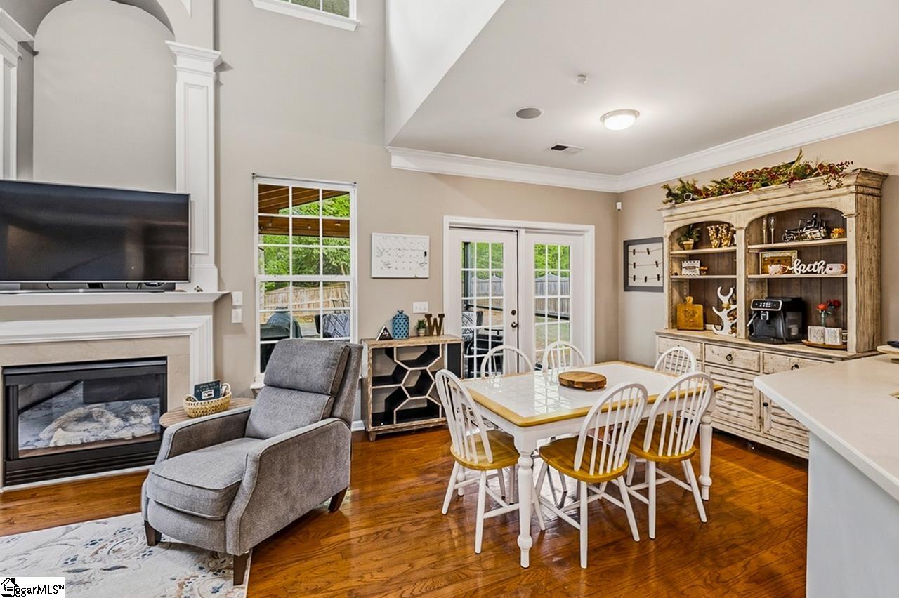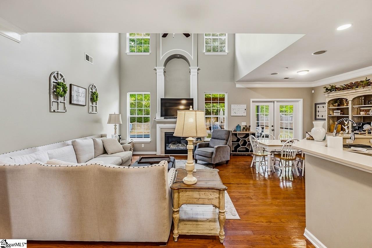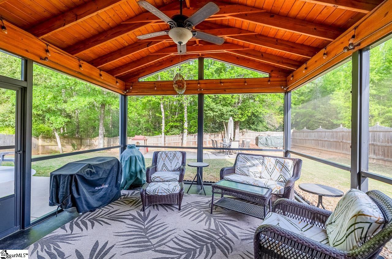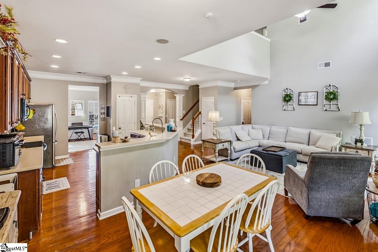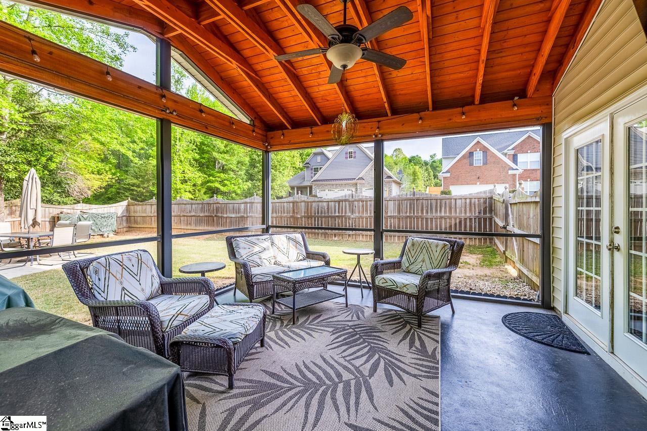 Welcome to this charming 4-bedroom, 2.5-bath traditional home nestled on a wooded corner lot in the sought-after Bells Creek community of Simpsonville. With approximately 2,218 square feet of thoughtfully designed living space, this home offers an open floor plan with soaring 9ft+ ceilings, hardwood floors, and a cozy gas fireplace. The main level features a spacious kitchen with solid surface countertops, a primary suite with a garden tub, separate shower, double sinks, and a walk-in closet. Upstairs you’ll find three additional generously sized bedrooms, perfect for family or guests. Enjoy relaxing on the screened porch overlooking the level, tree-lined backyard. The attached 2-car garage, paved driveway, and community amenities including a pool, common areas, and sidewalks round out everything this home has to offer.
