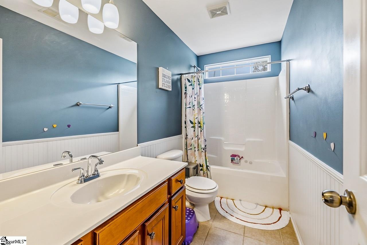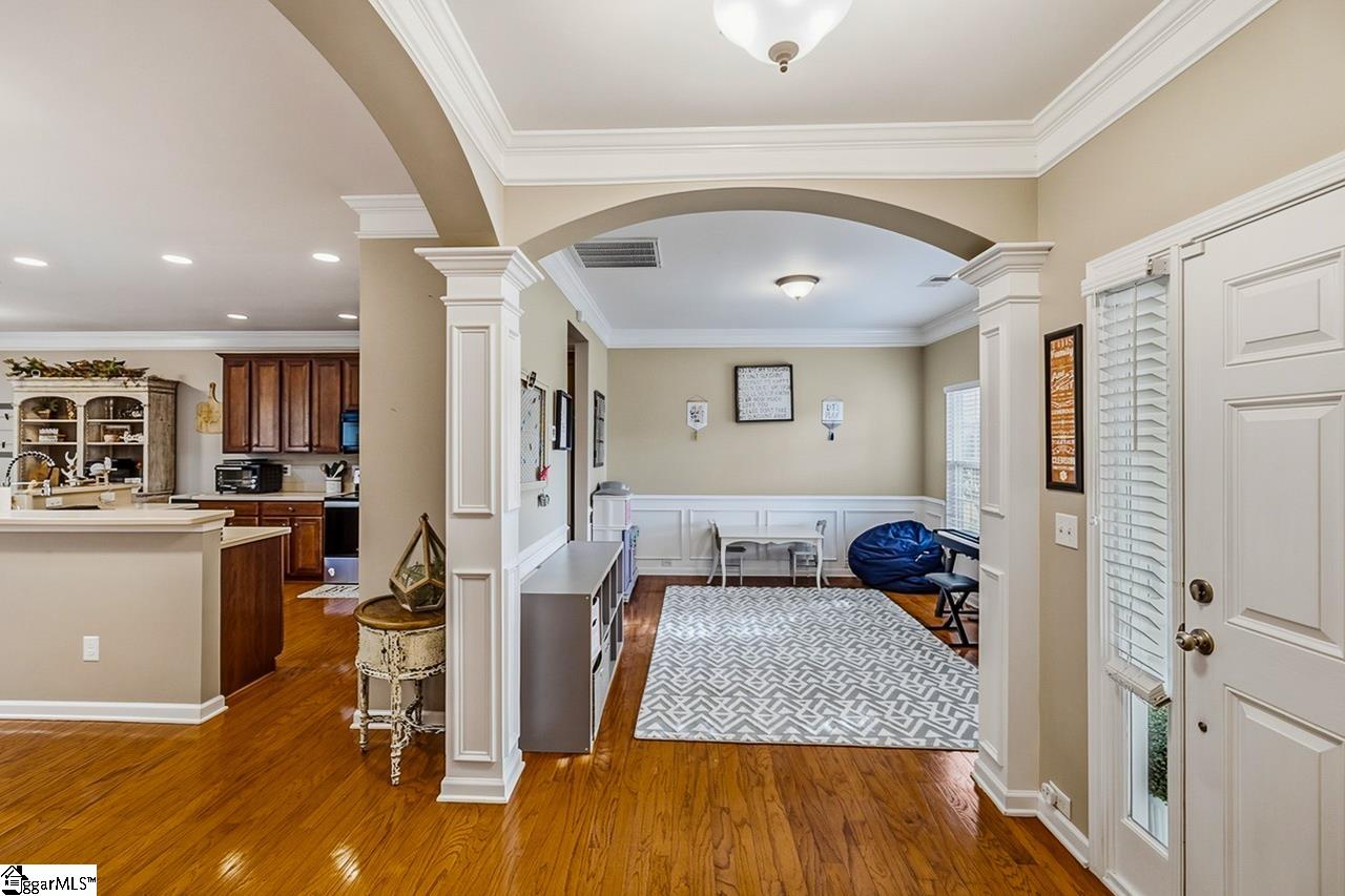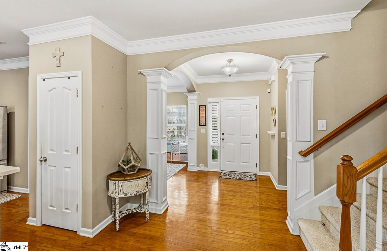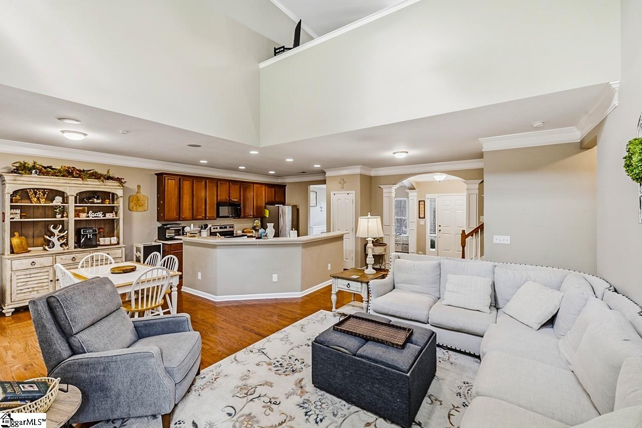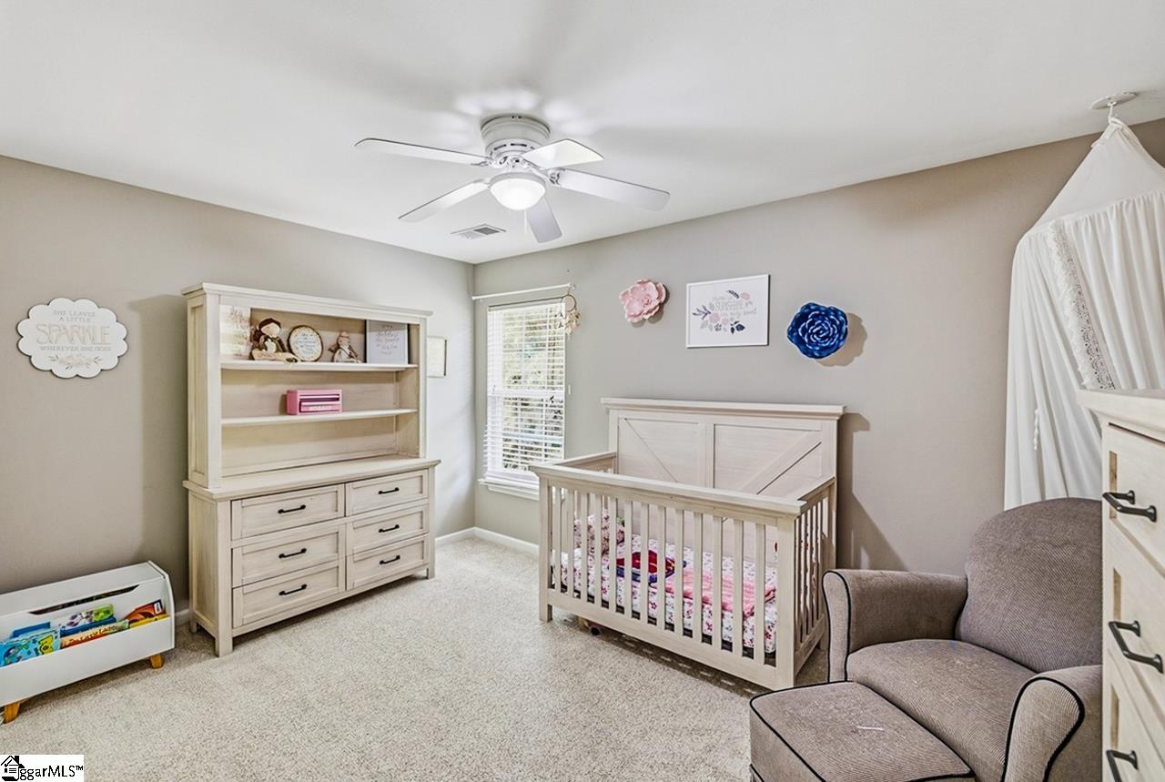 Welcome to this charming 4-bedroom, 2.5-bath traditional home nestled on a wooded corner lot in the sought-after Bells Creek community of Simpsonville. With approximately 2,218 square feet of thoughtfully designed living space, this home offers an open floor plan with soaring 9ft+ ceilings, hardwood floors, and a cozy gas fireplace. The main level features a spacious kitchen with solid surface countertops, a primary suite with a garden tub, separate shower, double sinks, and a walk-in closet. Upstairs you’ll find three additional generously sized bedrooms, perfect for family or guests. Enjoy relaxing on the screened porch overlooking the level, tree-lined backyard. The attached 2-car garage, paved driveway, and community amenities including a pool, common areas, and sidewalks round out everything this home has to offer.