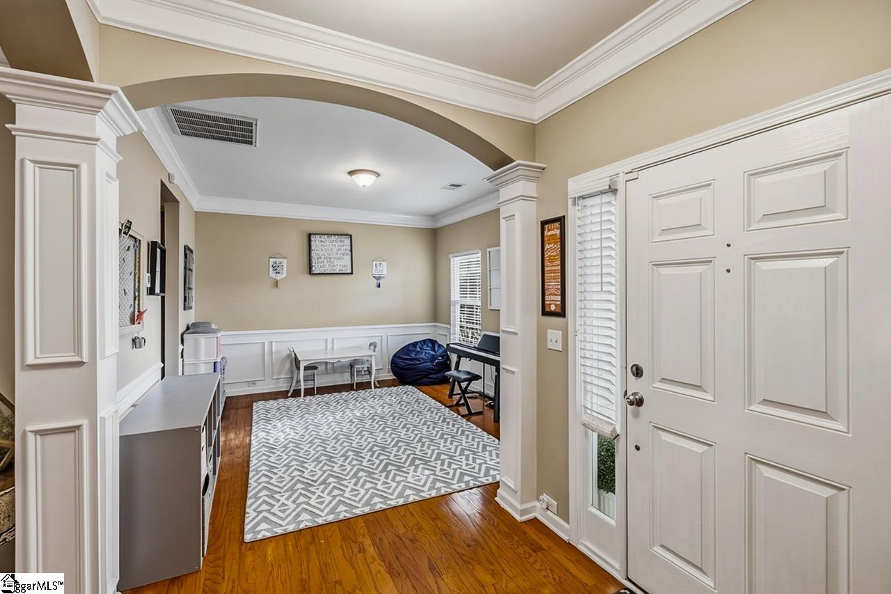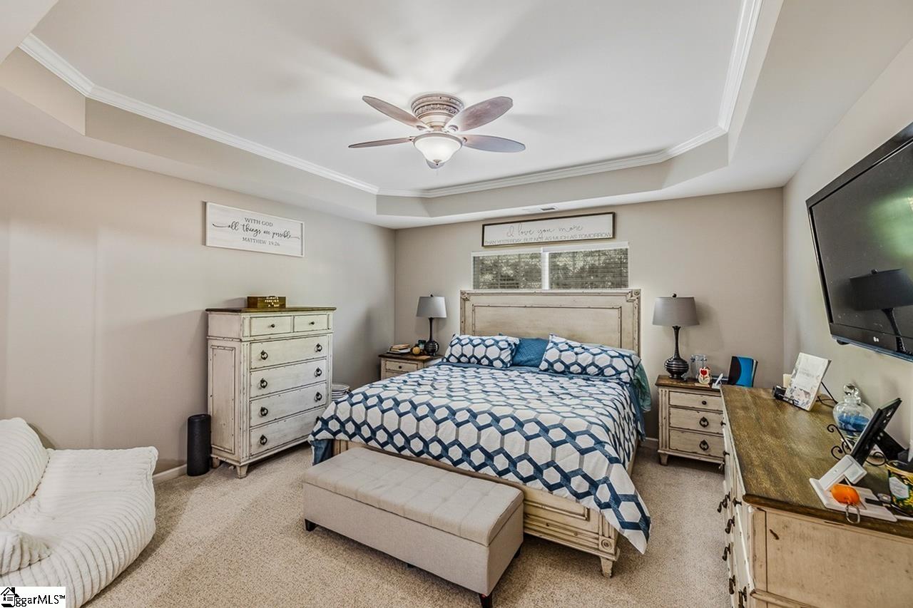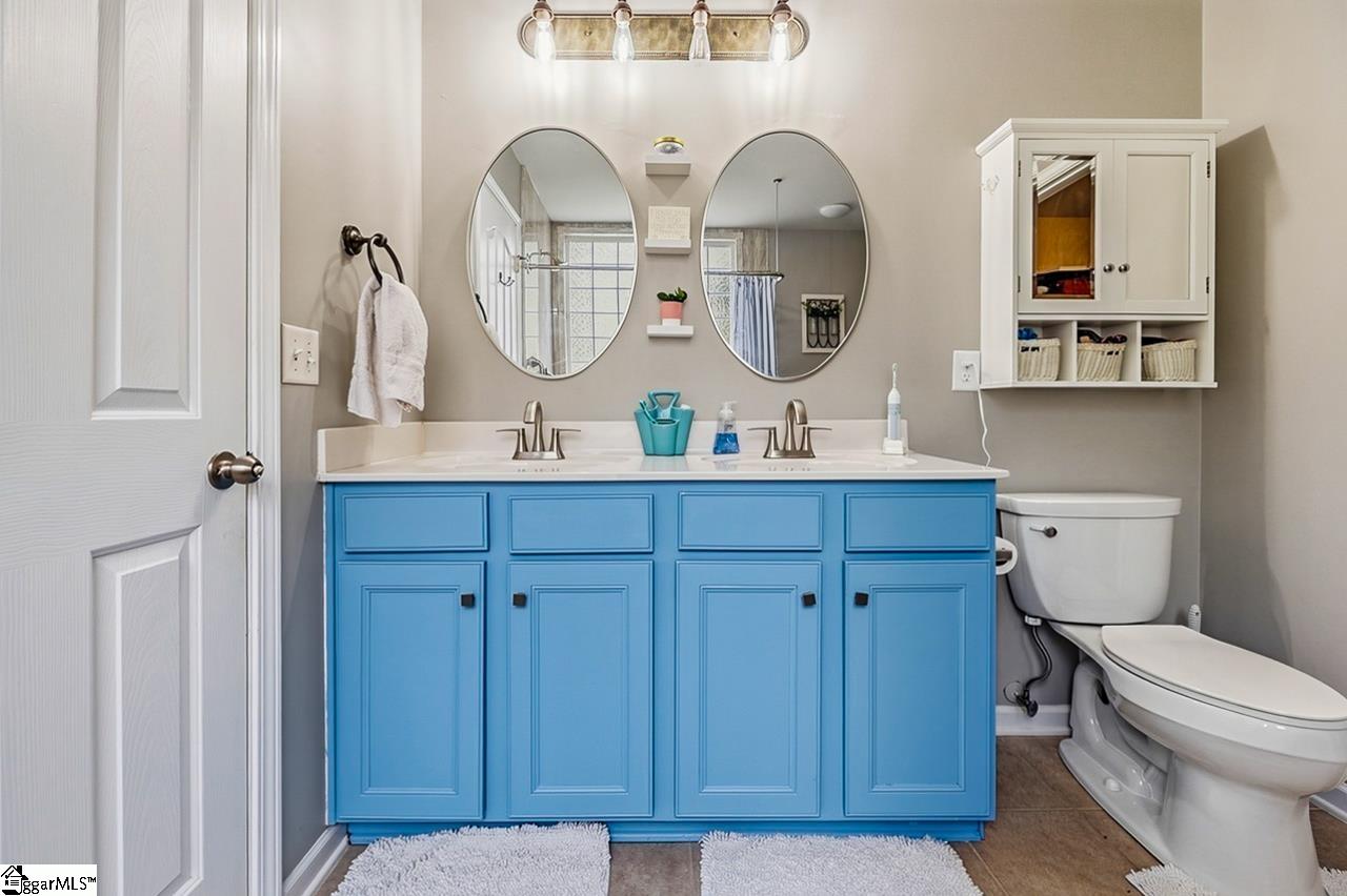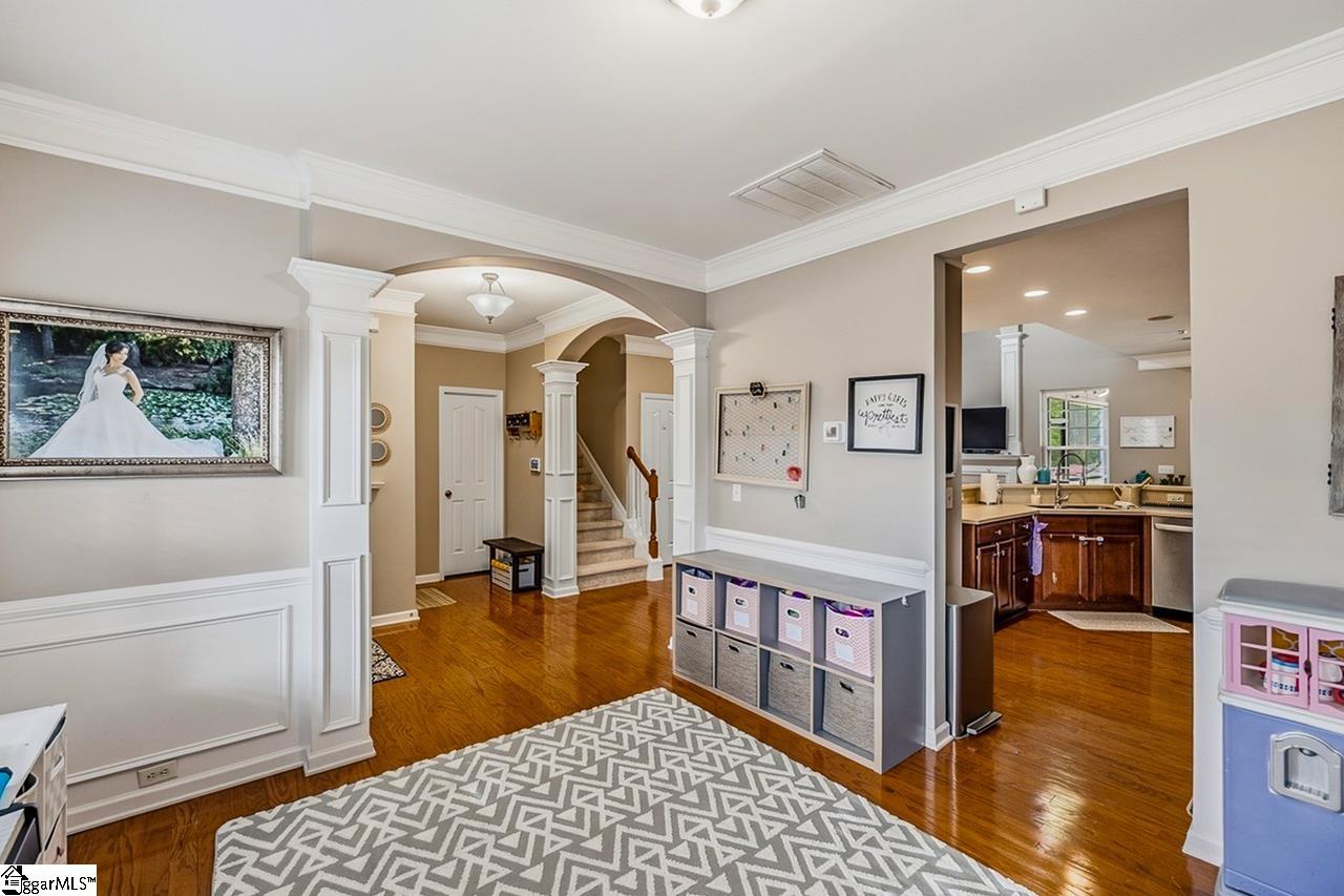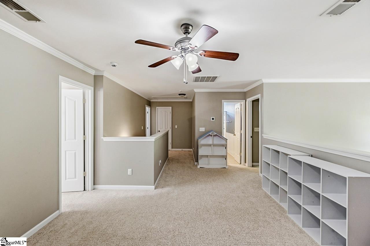 Welcome to this charming 4-bedroom, 2.5-bath traditional home nestled on a wooded corner lot in the sought-after Bells Creek community of Simpsonville. With approximately 2,218 square feet of thoughtfully designed living space, this home offers an open floor plan with soaring 9ft+ ceilings, hardwood floors, and a cozy gas fireplace. The main level features a spacious kitchen with solid surface countertops, a primary suite with a garden tub, separate shower, double sinks, and a walk-in closet. Upstairs you’ll find three additional generously sized bedrooms, perfect for family or guests. Enjoy relaxing on the screened porch overlooking the level, tree-lined backyard. The attached 2-car garage, paved driveway, and community amenities including a pool, common areas, and sidewalks round out everything this home has to offer.