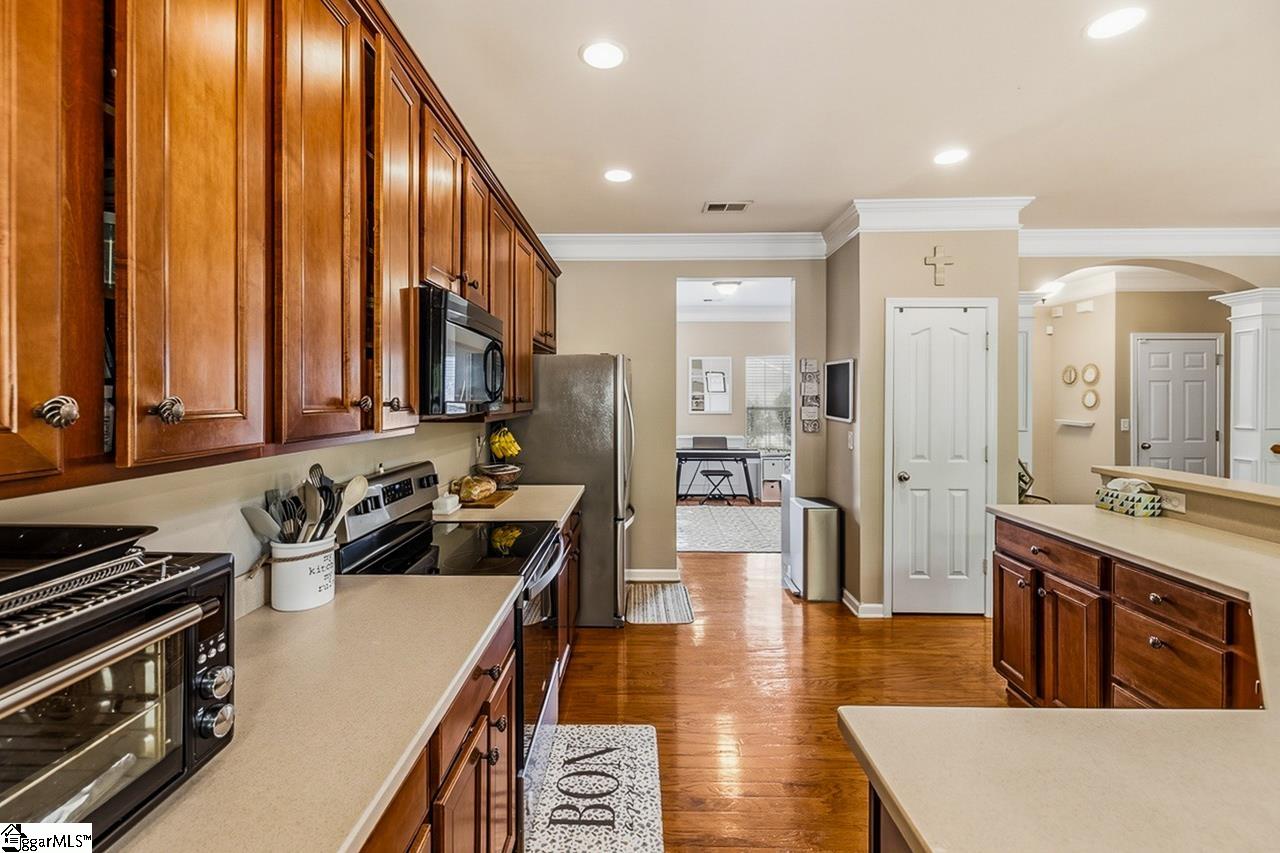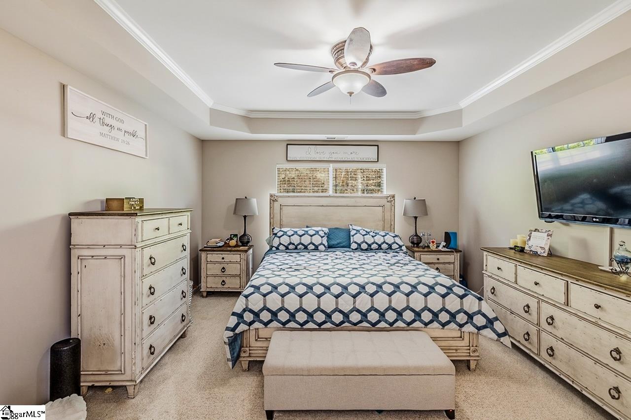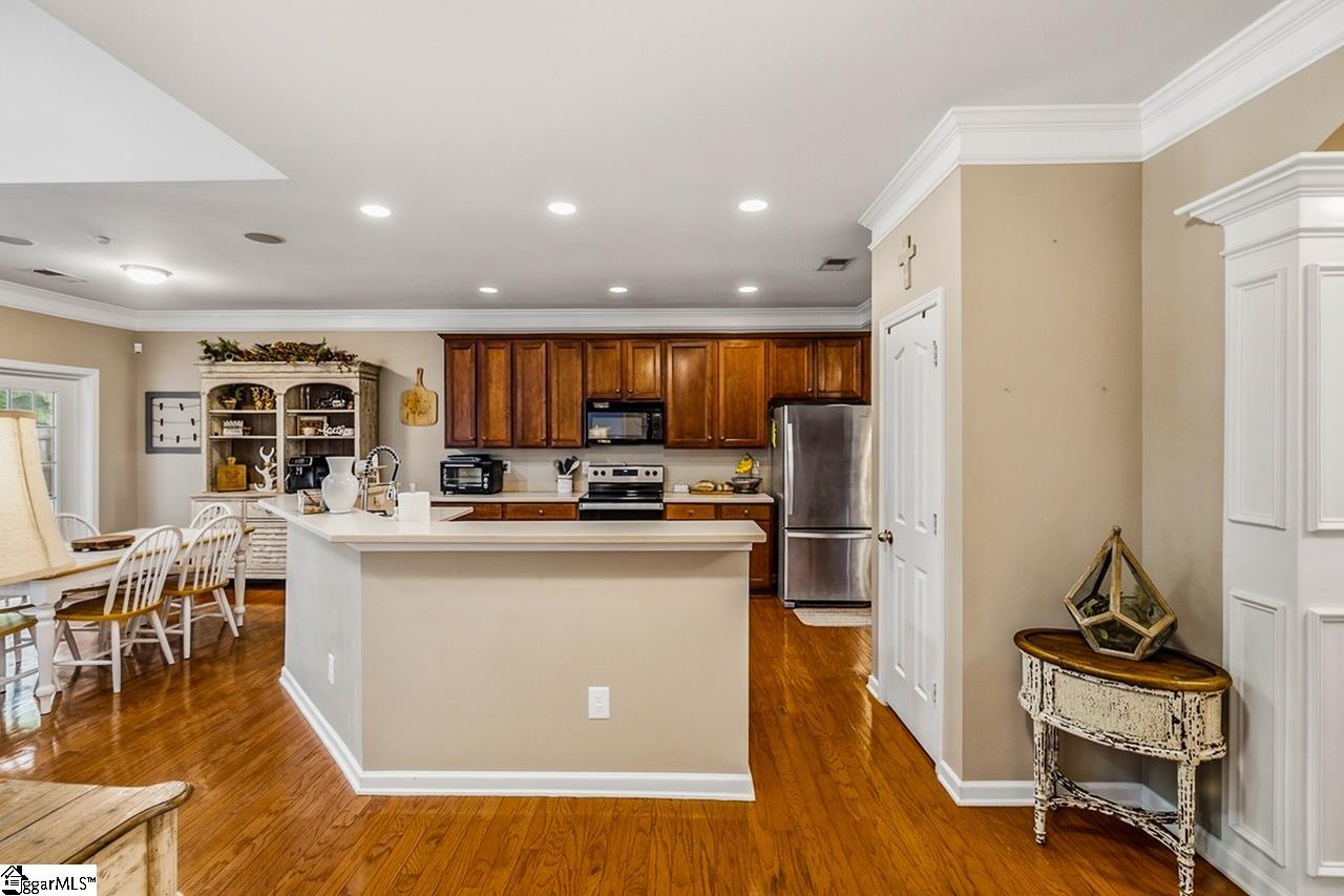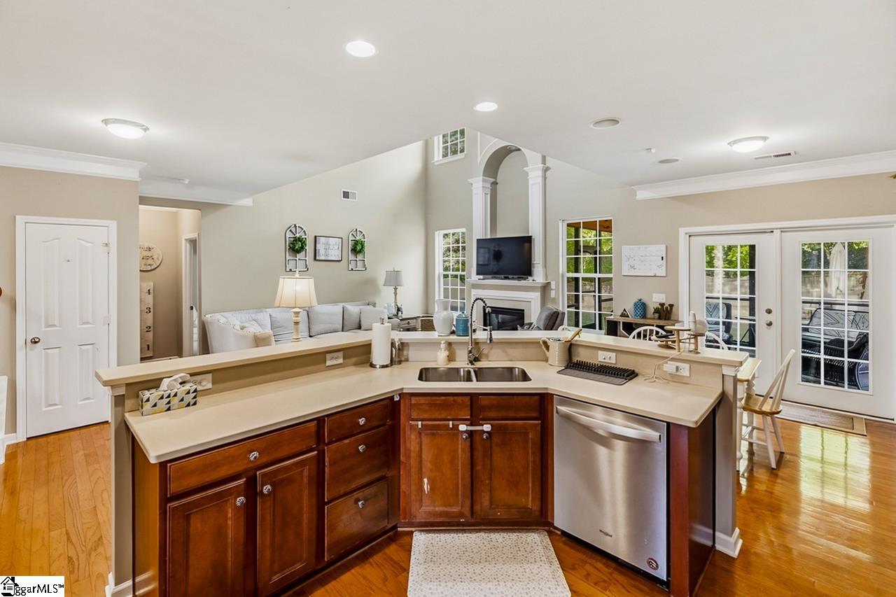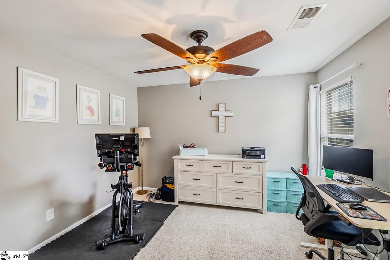 Welcome to this charming 4-bedroom, 2.5-bath traditional home nestled on a wooded corner lot in the sought-after Bells Creek community of Simpsonville. With approximately 2,218 square feet of thoughtfully designed living space, this home offers an open floor plan with soaring 9ft+ ceilings, hardwood floors, and a cozy gas fireplace. The main level features a spacious kitchen with solid surface countertops, a primary suite with a garden tub, separate shower, double sinks, and a walk-in closet. Upstairs you’ll find three additional generously sized bedrooms, perfect for family or guests. Enjoy relaxing on the screened porch overlooking the level, tree-lined backyard. The attached 2-car garage, paved driveway, and community amenities including a pool, common areas, and sidewalks round out everything this home has to offer.