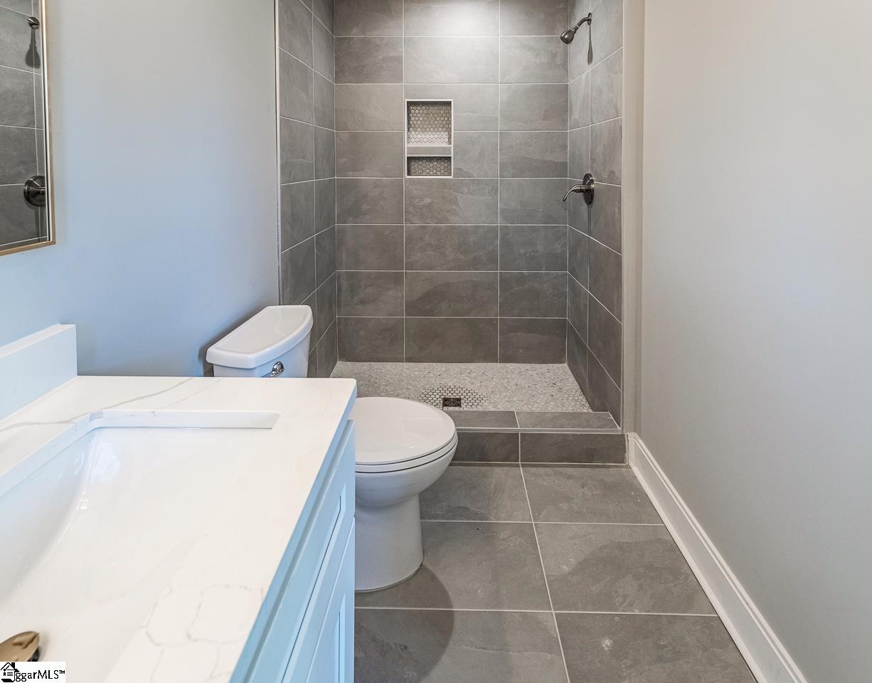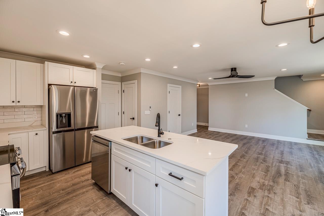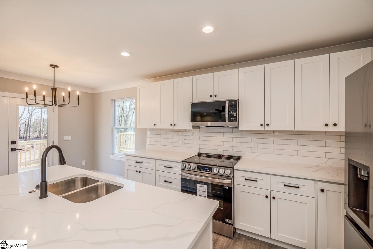 LOCATION AND LUXURY! You’ll find both in this newly built home sitting on just over half an acre and located minutes from downtown and a short drive to I-85. As you enter the home from the charming covered porch, the natural light coming through the windows accentuates the great room that will welcome all of your guests. More natural light comes into the kitchen to highlight the quartz countertops and brand new LG ThinQ stainless steel appliances, making the space ideal for daily meals and special gatherings. There is also a small area that can be used as a breakfast nook that sits off the kitchen. You and your guests can make use of the half bathroom located off the great room on the main level and save a trip upstairs. Once the guests have gone home and you are ready to retire for the evening, you and your loved ones can make your way upstairs to the 4 bedrooms and 2 full baths that await you. A spacious 13×14 master bedroom includes a walk in closet with a rustic, space saving barn door. The beautiful master bathroom with double sinks with quartz countertops and a tiled walk in shower. The rest of the bedrooms are all equally sized yet each has its own unique features. These bedrooms share the second full bathroom on the second floor which also comes with quartz countertops and a shower/tub combo. The last room on the second level is the laundry room, with plenty of room for a side by side washer and dryer and some shelving. When you are ready to head outdoors, you can exit the via breakfast nook to the beautiful and spacious back deck with plenty of space to gather, cookout and enjoy the fresh air. Step down from the deck into the backyard which is currently a blank slate, limited only by your imagination. The back of the property features a cleared area for recreation, gardening or simply relaxing and soaking in some sun along with a wooded area that is perfect for ziplines, adventures and hammocks. Call your agent and schedule a showing today! This one won’t last long!!