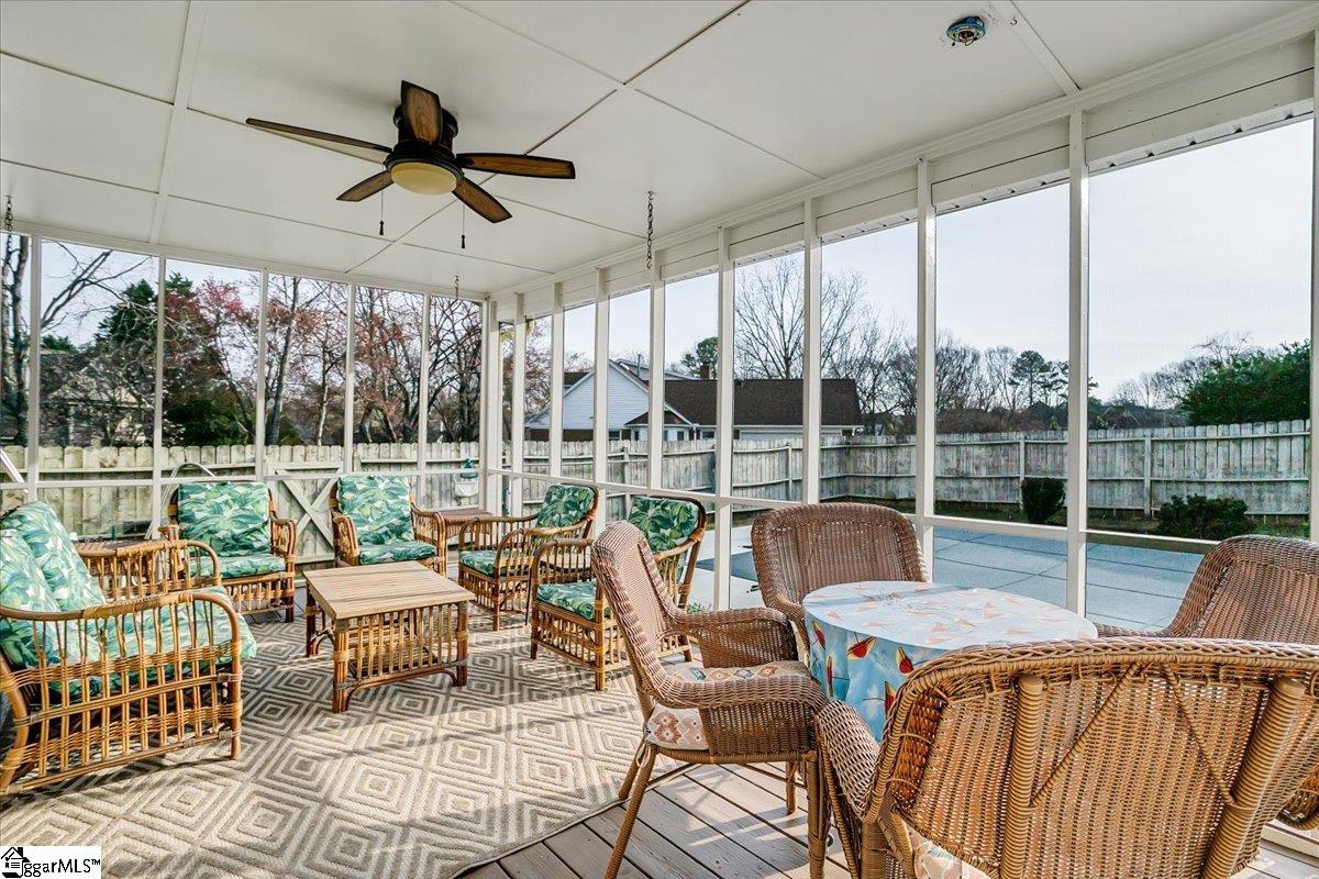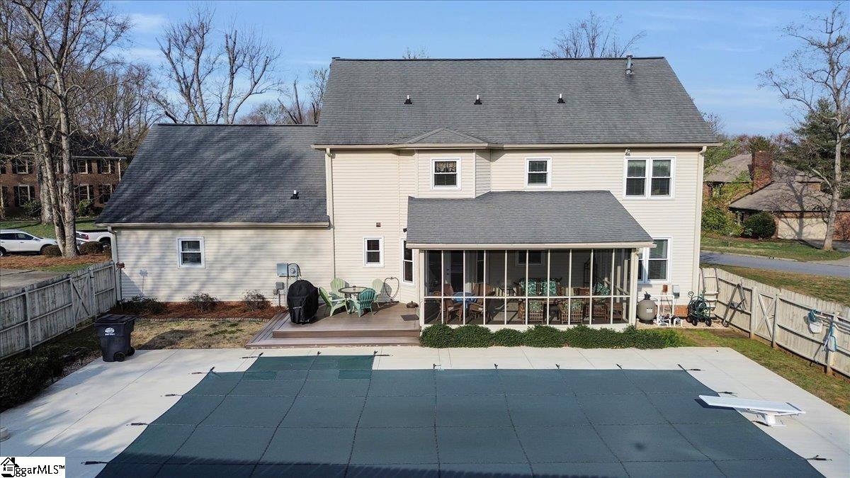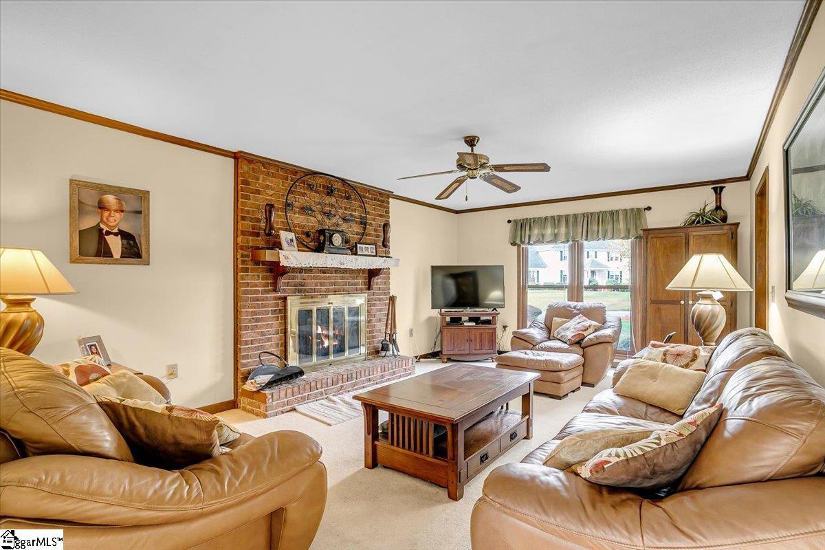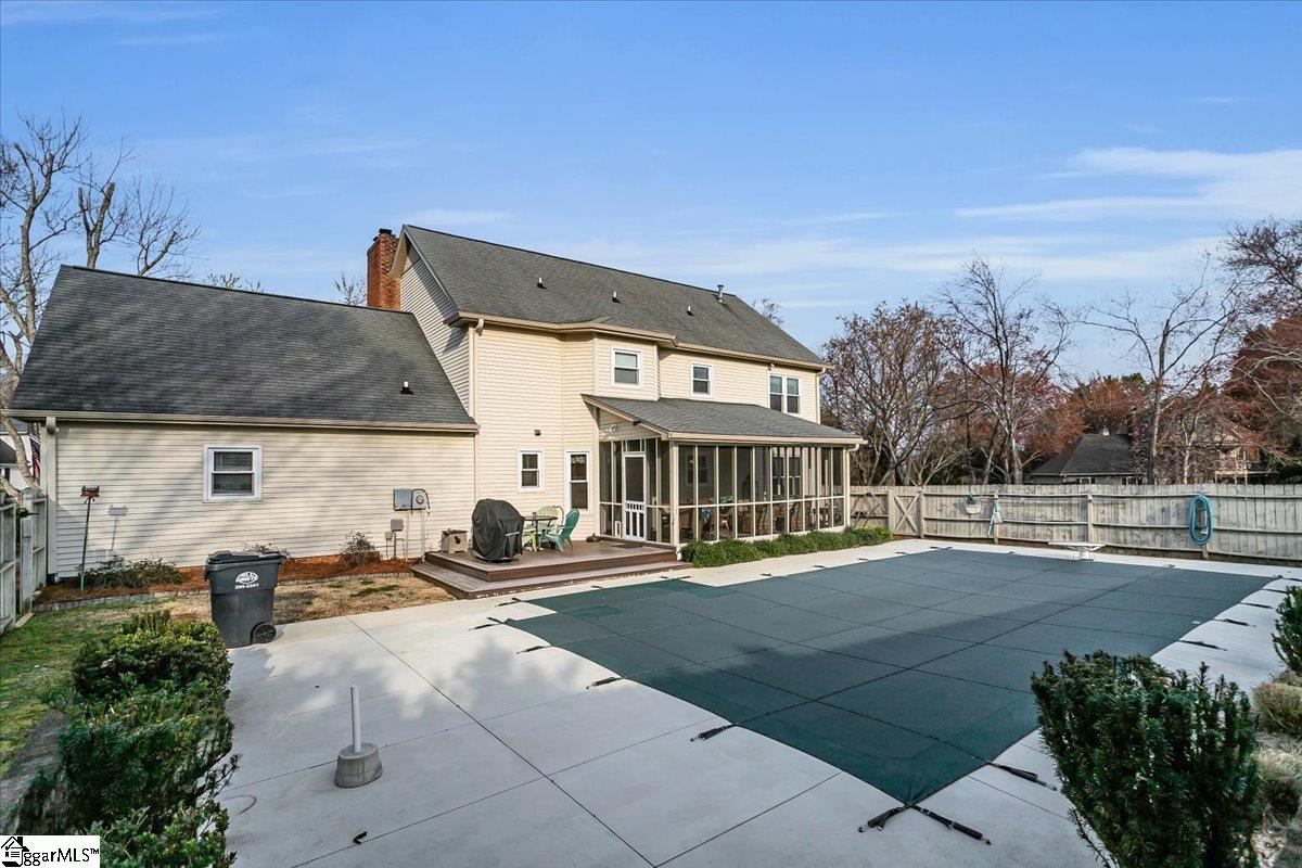 Welcome to 1401 Plantation Drive, Simpsonville, SC 29681! Situated on a desirable corner lot in the highly sought-after Holly Tree Plantation, this stunning 4-bedroom, 2.5-bathroom home has 3,053 square feet of comfortable living space, blending classic charm with modern convenience. Inside, the spacious living area features a cozy fireplace, while the kitchen boasts beautiful granite countertops, ample counter space, and cabinetry. A formal dining room provides the perfect space for entertaining. Granite countertops are featured throughout the home, adding a touch of elegance to the bathrooms and additional spaces. The primary suite is a true retreat, featuring its own fireplace and a jetted tub in the en-suite bathroom. Three additional bedrooms has plenty of space, with 2.5 bathrooms ensuring convenience for all. A large media/rec room with its own private stairway access provides endless possibilities—perfect for a home office, playroom, or additional living space. Sitting on 0.60 acres, the backyard is an entertainer’s dream with a spacious patio, a peaceful screened-in porch, and a beautiful in-ground saltwater pool—perfect for enjoying quiet mornings or relaxing days outside. This home also has ample storage throughout, including an oversized garage with an attached room, ideal for extra storage or a workshop. Fiber-to-the-home internet is coming soon for ultra-fast connectivity. Residents can access the golf course and tennis courts by joining the Holly Tree Country Club, making this home ideal for those who love an active lifestyle. Don’t miss out—schedule your private tour today!