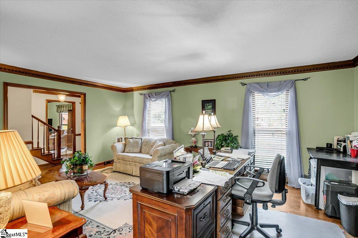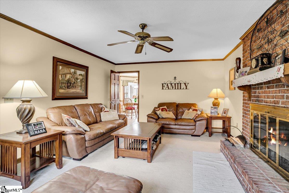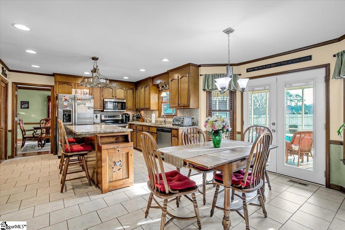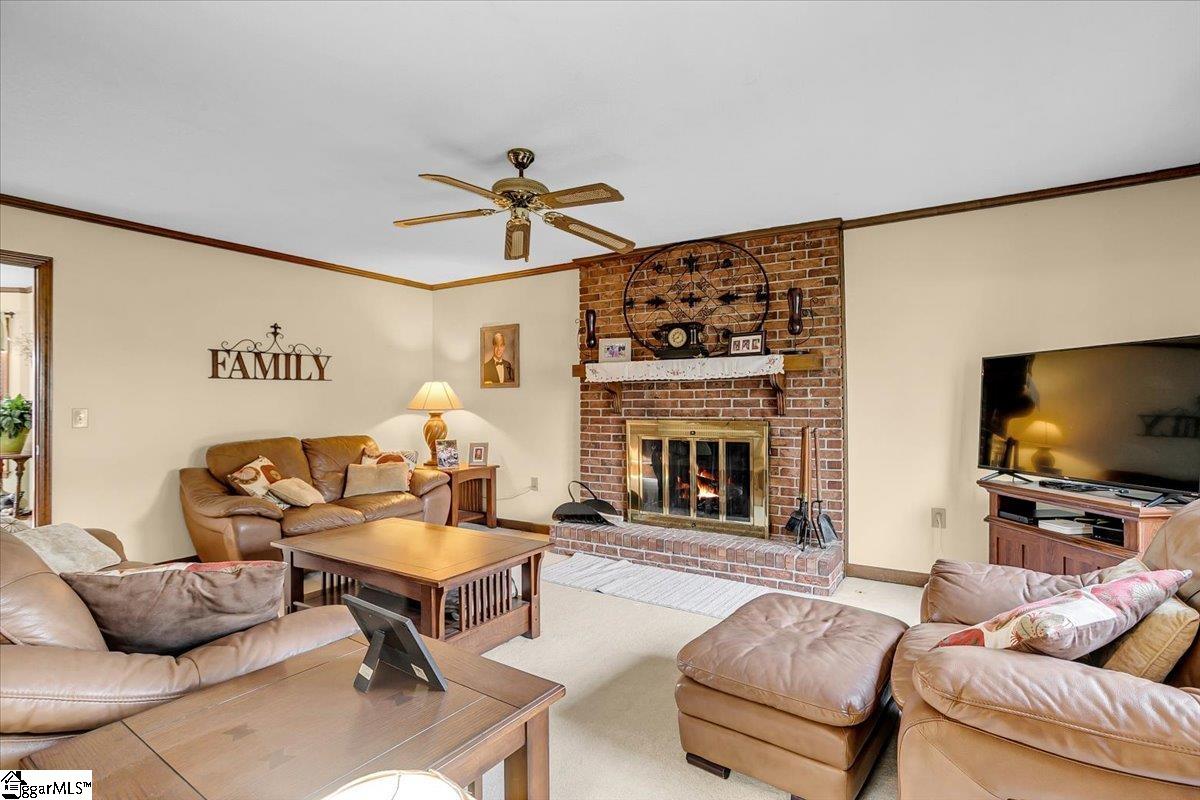 Welcome to 1401 Plantation Drive, Simpsonville, SC 29681! Situated on a desirable corner lot in the highly sought-after Holly Tree Plantation, this stunning 4-bedroom, 2.5-bathroom home has 3,053 square feet of comfortable living space, blending classic charm with modern convenience. Inside, the spacious living area features a cozy fireplace, while the kitchen boasts beautiful granite countertops, ample counter space, and cabinetry. A formal dining room provides the perfect space for entertaining. Granite countertops are featured throughout the home, adding a touch of elegance to the bathrooms and additional spaces. The primary suite is a true retreat, featuring its own fireplace and a jetted tub in the en-suite bathroom. Three additional bedrooms has plenty of space, with 2.5 bathrooms ensuring convenience for all. A large media/rec room with its own private stairway access provides endless possibilities—perfect for a home office, playroom, or additional living space. Sitting on 0.60 acres, the backyard is an entertainer’s dream with a spacious patio, a peaceful screened-in porch, and a beautiful in-ground saltwater pool—perfect for enjoying quiet mornings or relaxing days outside. This home also has ample storage throughout, including an oversized garage with an attached room, ideal for extra storage or a workshop. Fiber-to-the-home internet is coming soon for ultra-fast connectivity. Residents can access the golf course and tennis courts by joining the Holly Tree Country Club, making this home ideal for those who love an active lifestyle. Don’t miss out—schedule your private tour today!