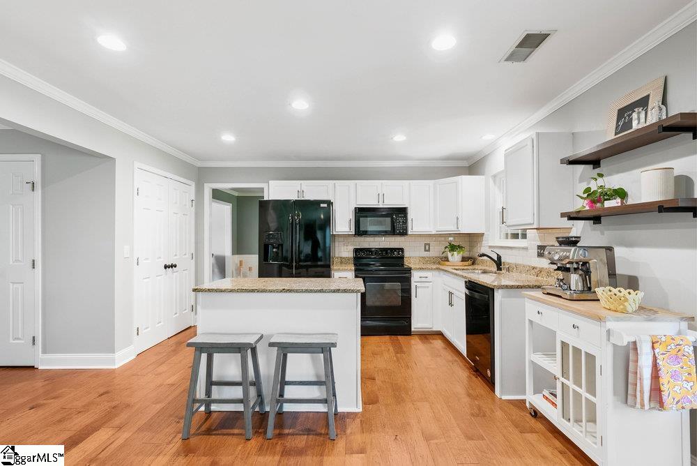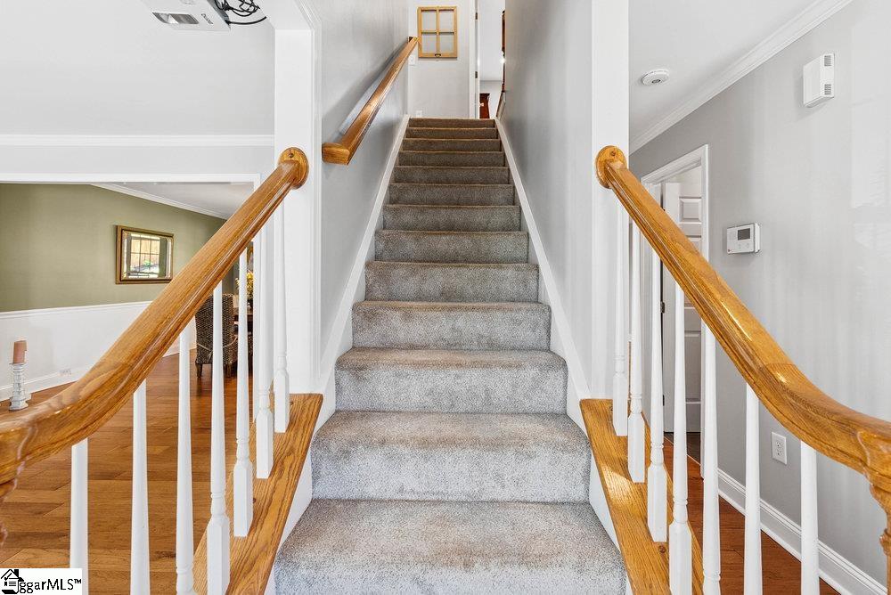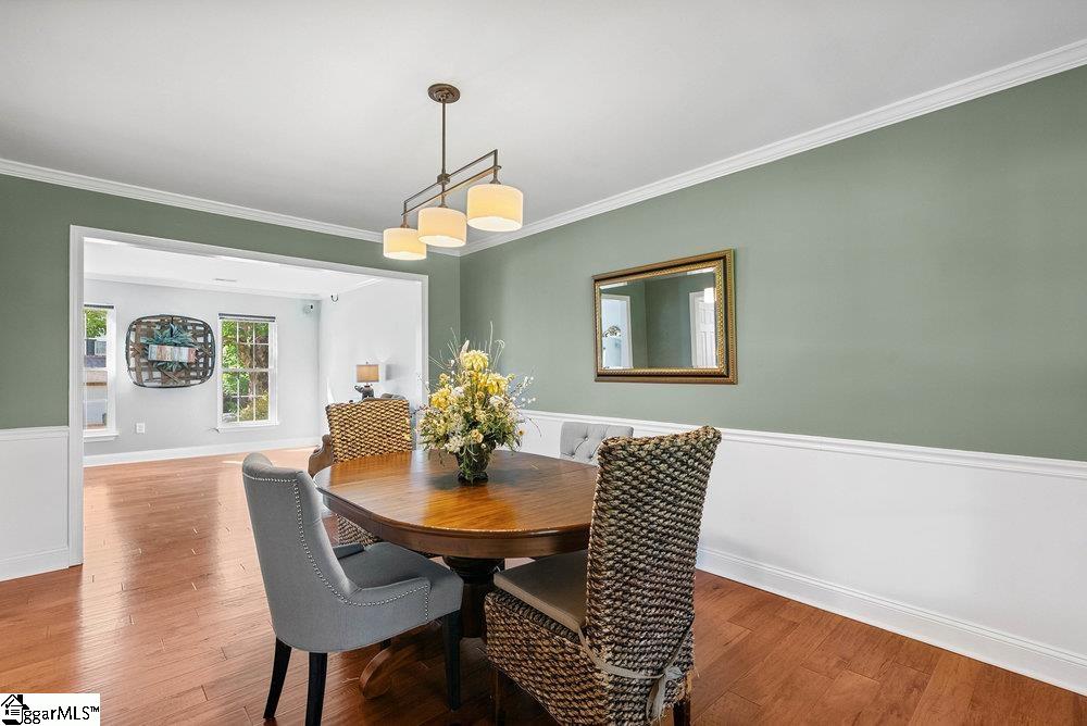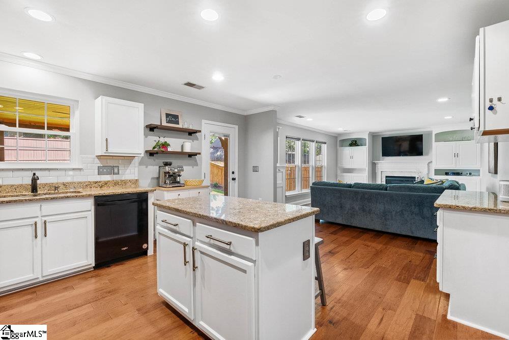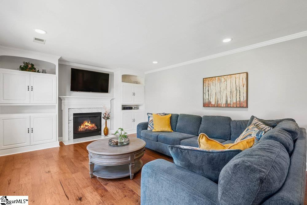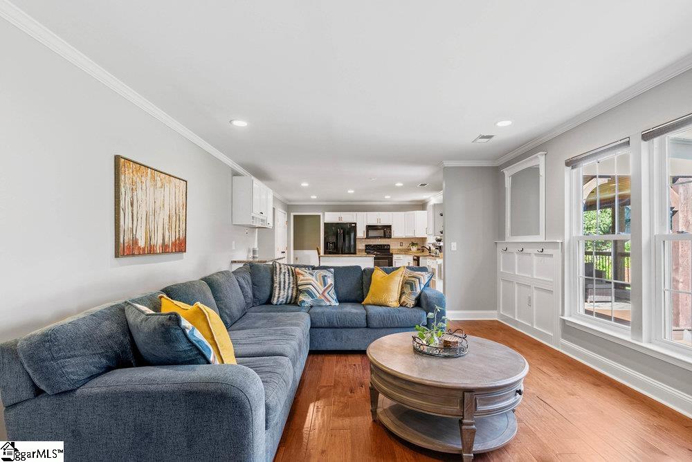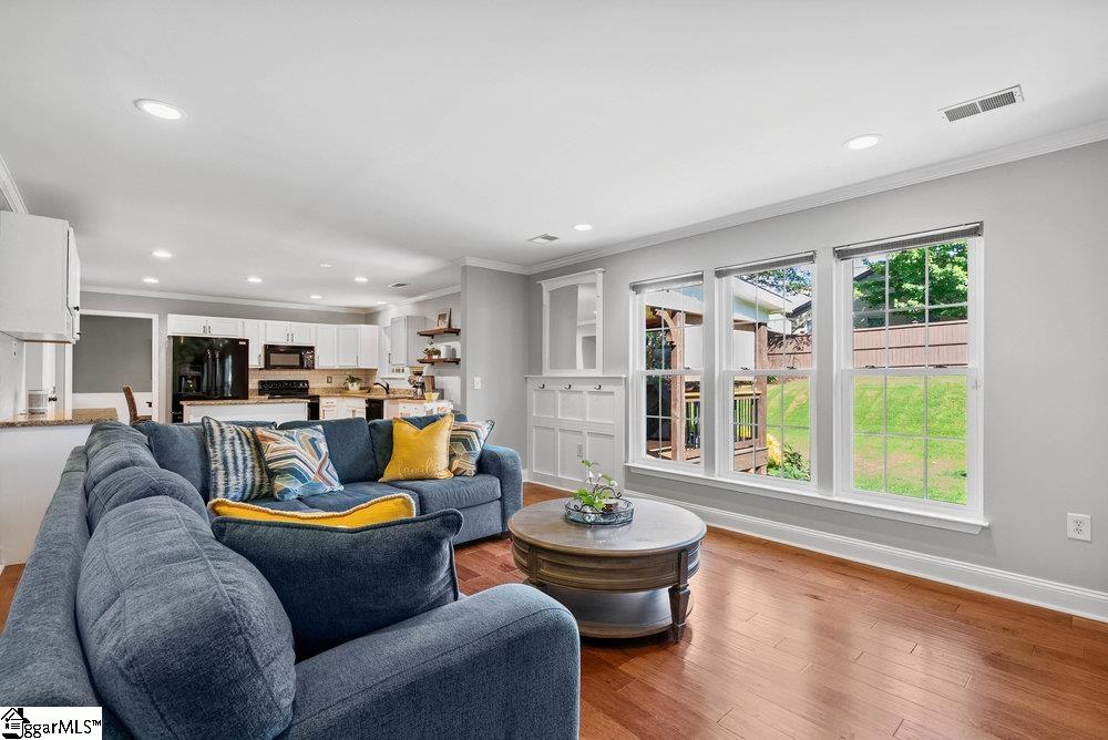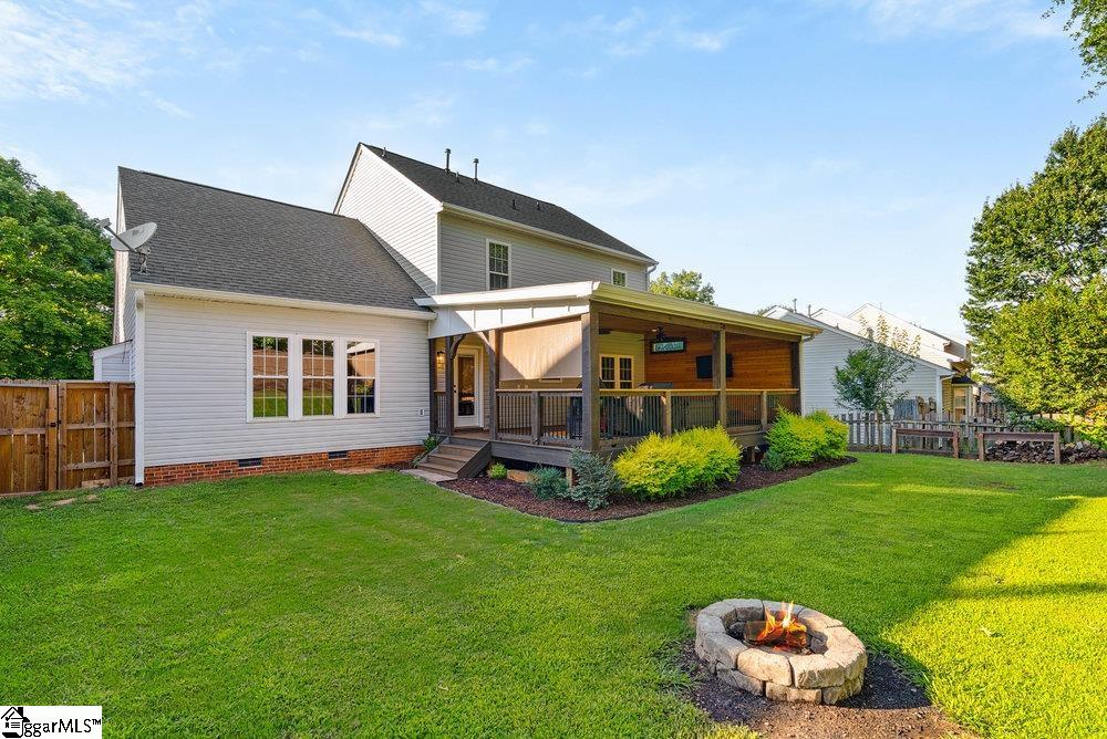 Perfectly positioned in one of Greenville County’s most sought-after areas, this gorgeous 4-bedroom, 2.5-bath home offers the ideal blend of convenience, style, and comfort. Located just 7 minutes from the airport and 5 minutes to major shopping and entertainment, you truly can’t beat this location- paired with top-rated award-winning RIVERSIDE schools! Step inside to discover stunning wide plank wood floors, elegant crown molding, and a beautifully upgraded kitchen featuring white cabinetry, granite countertops, a spacious island, an eat-in breakfast area, a generous pantry, and even a built-in desk with extra drawers and cabinets for added storage. Enjoy hosting gatherings in the spacious dining room with classic chair rail details or relax in the bright and inviting family room complete with floor-to-ceiling built-ins and a cozy gas-log fireplace. Upstairs, you’ll find four comfortable bedrooms, offering plenty of space for everyone. The laundry room is thoughtfully designed with a utility sink and a convenient washer/dryer platform, with the current appliances negotiable for purchase. Step outside to your fenced-in backyard- perfect for kids, pets, or relaxing afternoons. And don’t miss the brand-new beautifully detailed covered back porch, adding privacy and creating the ideal spot to unwind or entertain outdoors. This home has been meticulously maintained with numerous big-ticket updates already completed: a new roof in 2017, an entirely new HVAC and furnace system in 2019, a tankless water heater in 2019, a new garage door in 2025, plus all windows replaced in 2020. Residents of Shelburne Farms enjoy fabulous neighborhood amenities, including a sparkling community pool and a scenic neighborhood lake with a sidewalk loop for strolls or morning jogs. Easy to show, so come check it out today!