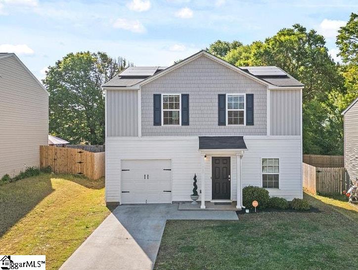 Discover the perfect blend of comfort, style, and convenience in this beautifully designed home located in Hallmark Commons. The main floor welcomes you with a spacious, open layout that seamlessly connects the living room, dining area, and kitchen—perfect for both entertaining and everyday living. A half bath and a flex room add even more functionality, whether you need a home office, playroom, or guest space. Freshly painted throughout, the home feels bright, clean, and move-in ready. Upstairs, unwind in the private owner’s suite featuring a large walk-in closet and an en-suite bathroom with double sinks—perfect for added comfort and convenience. Three additional bedrooms and a second full bath add plenty of space for family or guests. A convenient upstairs laundry room adds everyday ease. This home features a newer solar panel system, providing significant savings on energy bills. Even better—seller will pay off the solar system at closing, giving you the full benefits of clean, cost-effective energy with no loan to assume! Located in the highly sought-after District 5 school zone and USDA eligible, this home provides the perfect combination of location, lifestyle, and value. Don’t miss your chance to own this freshly updated home —schedule your tour today!