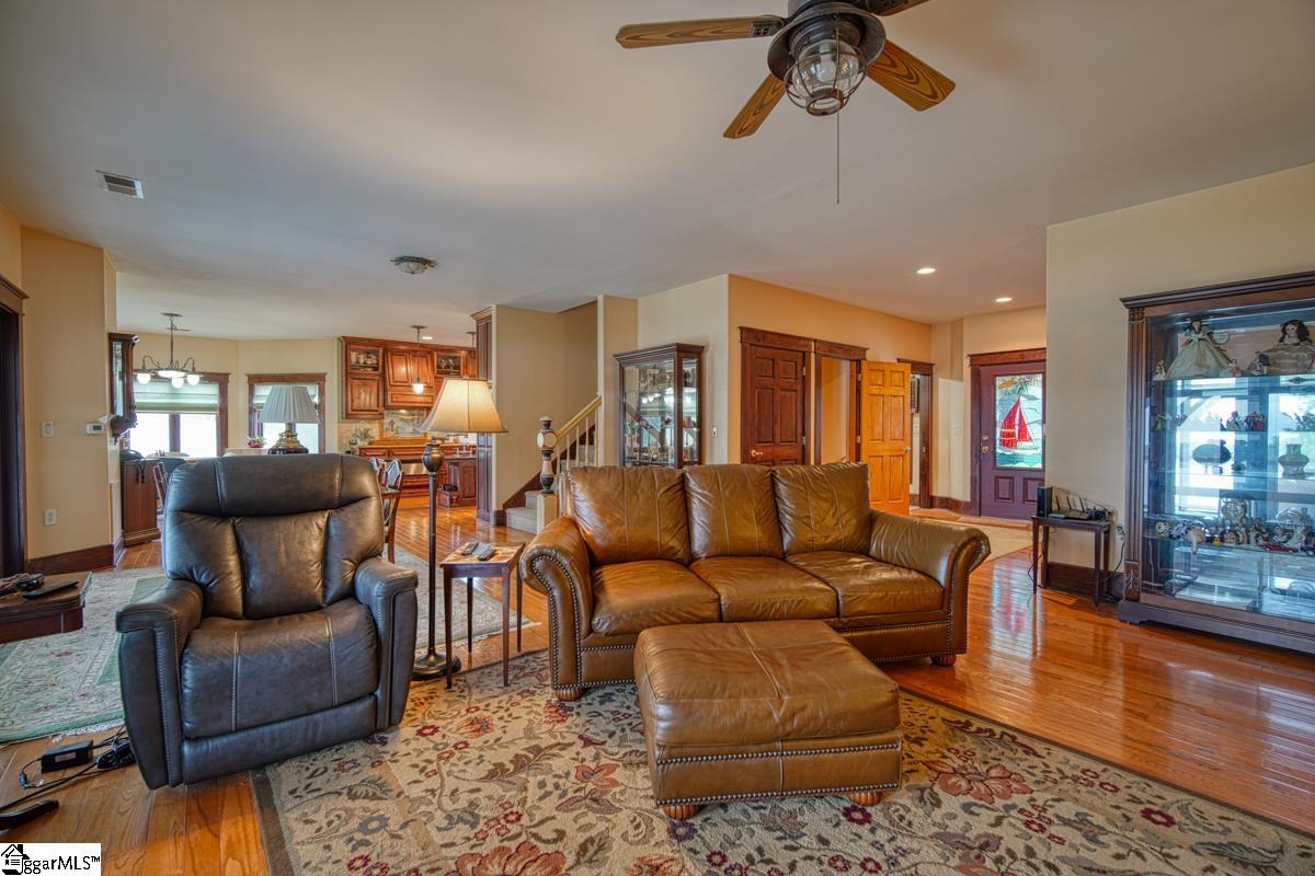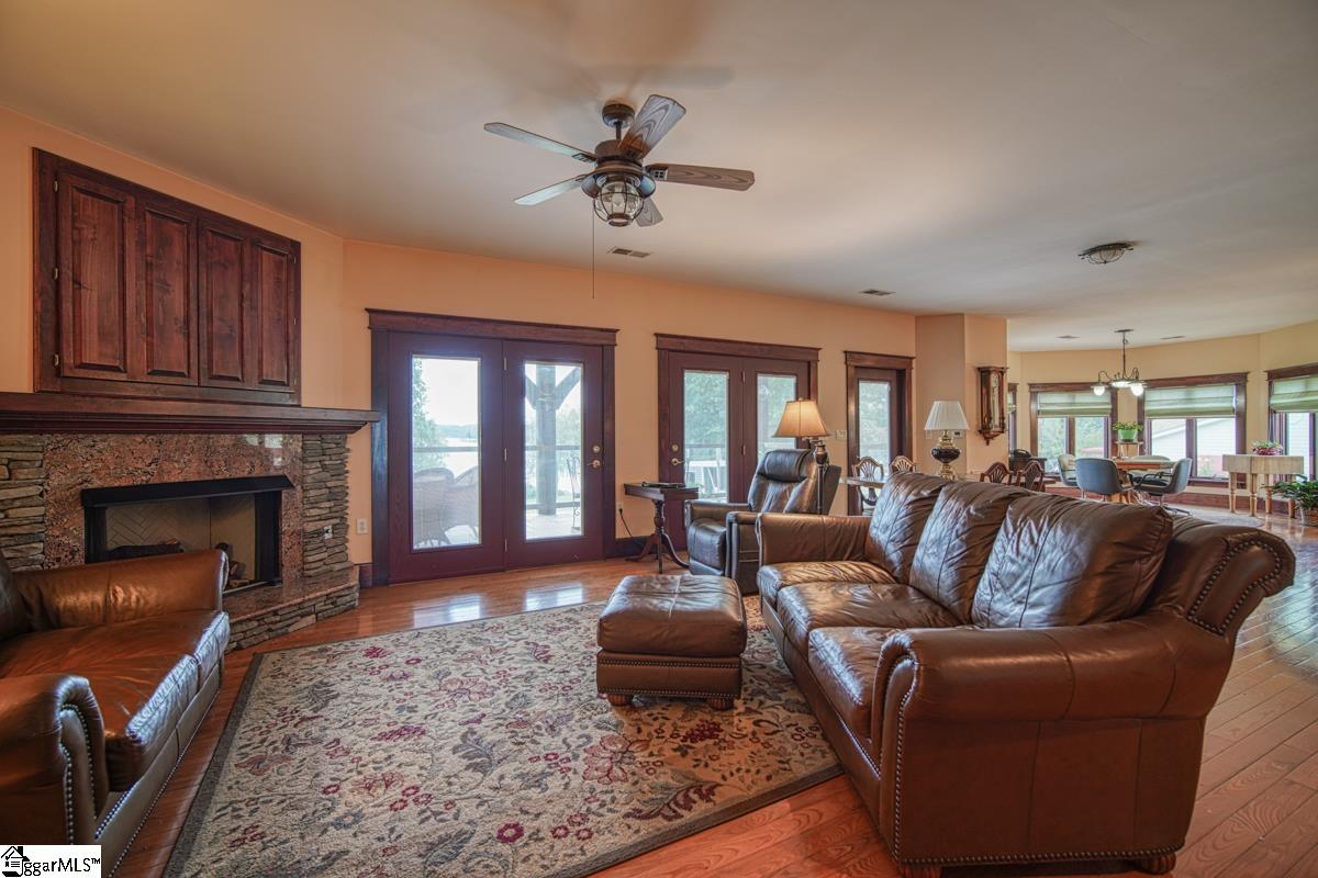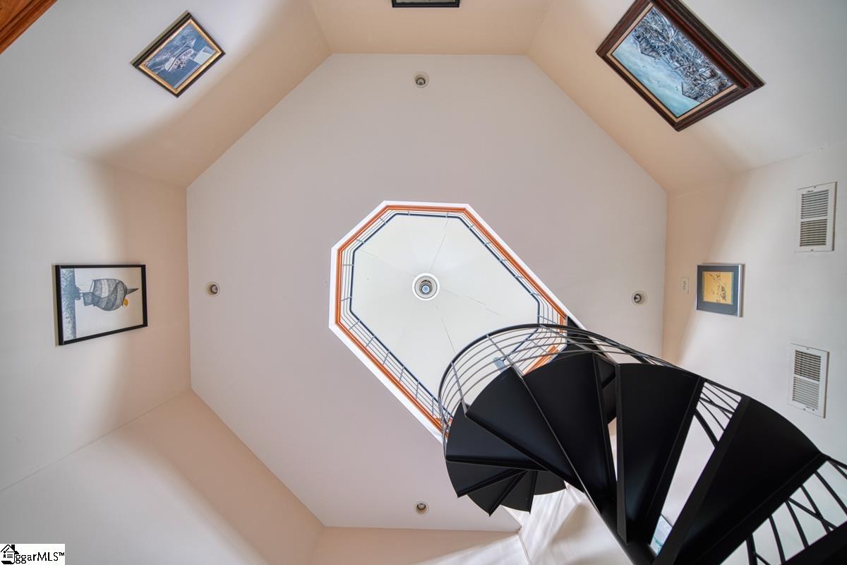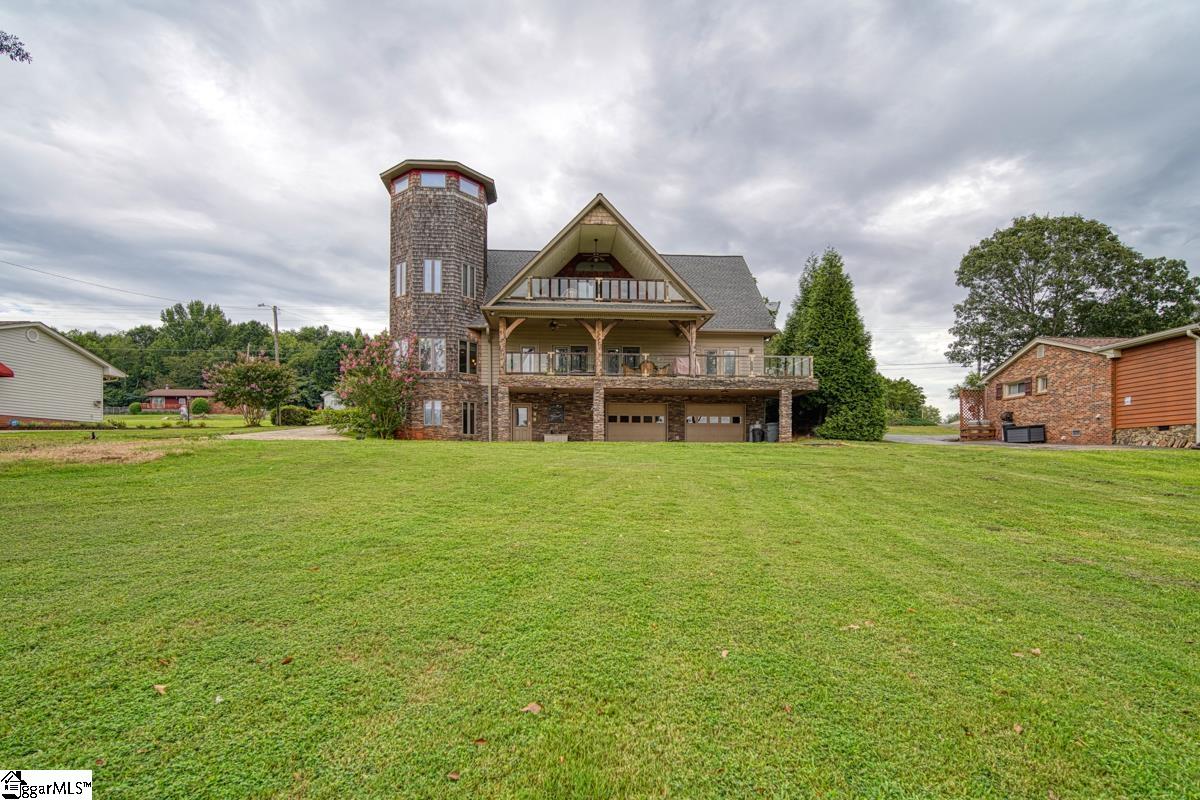 Avid lake lovers – don’t miss the chance to own this one-of-a kind unique lake front home perfect for active lake living or a peaceful retreat. An ELEVATOR will gently take you to any of the three floors, each boasting areas of enormous sized living and entertaining areas. Relax in your lighthouse / observation tower overlooking the lake whether during the day or as you enjoy the night sky. This flex room would possibly have many uses. Not only will you have private bedrooms but a fantastic lower level suitable as guest quarters with an additional kitchen. Also, on this level you can access the patio and easily take a walk to the lake. Open the garage doors and be amazed at the space for your vehicles, lake accessories and workshop area. Not only does the circular driveway take you to the front door under a portico but this concrete drive also leads to the lower level. Get ready to enjoy your time on the dock whether boating, skiing or fishing. The main kitchen has many unique features including under-cabinet lighting and lighting inside the glass doors which enhance the ambience. Not only does this beautiful kitchen have a four section in-cabinet pantry, a huge chef pantry, a comfortable seat- level prep island but also a laundry room with space for your freezer. A farm-house sink, work island sink, and pot-filler faucet add efficiency to your prep time. An arched doorway leads you into a room off the foyer which makes a lovely library, office or music room. Another arched doorway leads into yet another room, boasting a stairway to the stars. Two large balconies add to the enjoyment of the lake views and activities. You will have a choice of your primary bedroom on the main floor or on the second floor. Included in the numerous amenities are features that allow handicap accessibility. Everyone can enjoy year-round living in this home that makes life feel as if it were a continual vacation. The possibilities are endless!