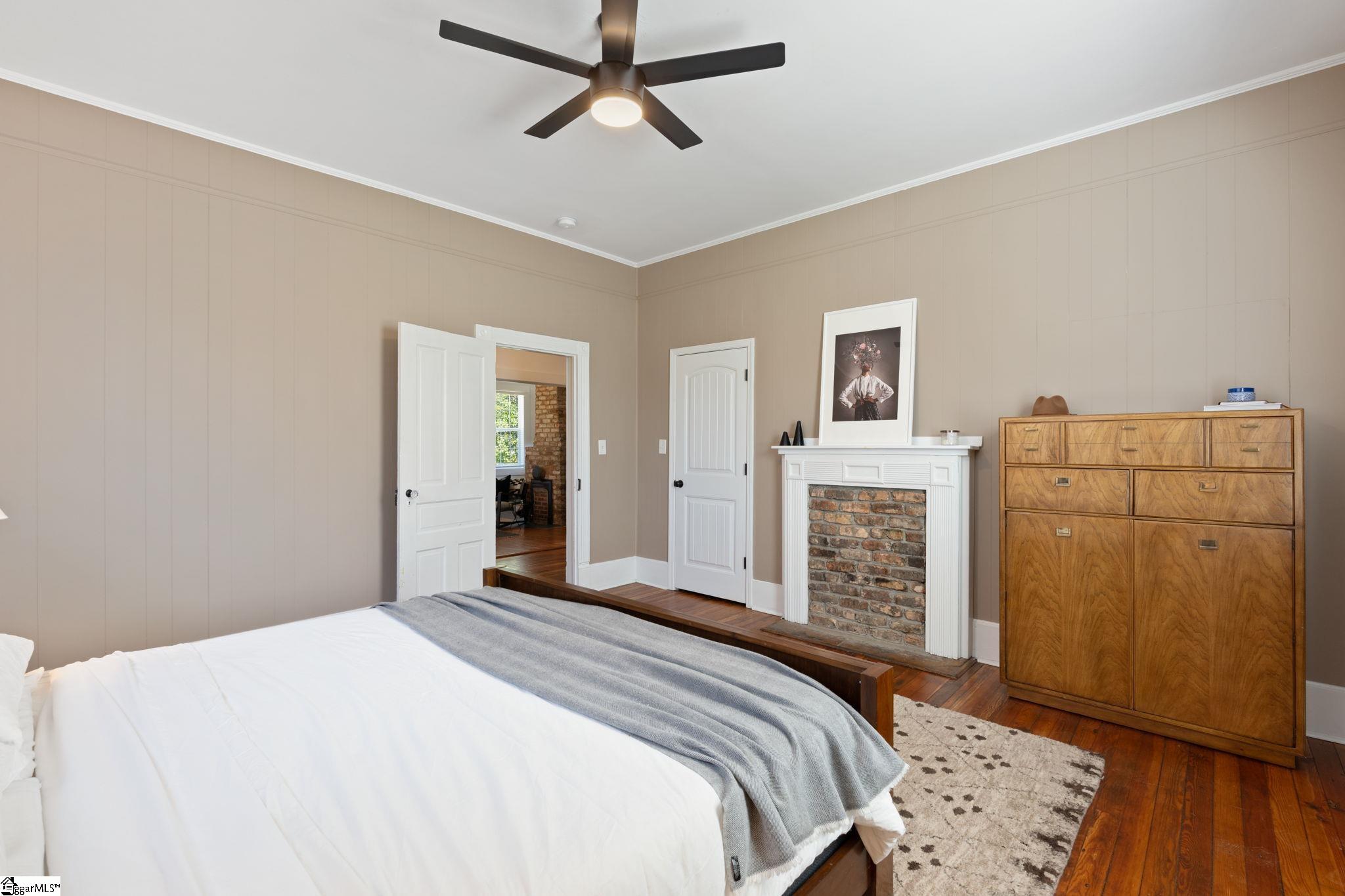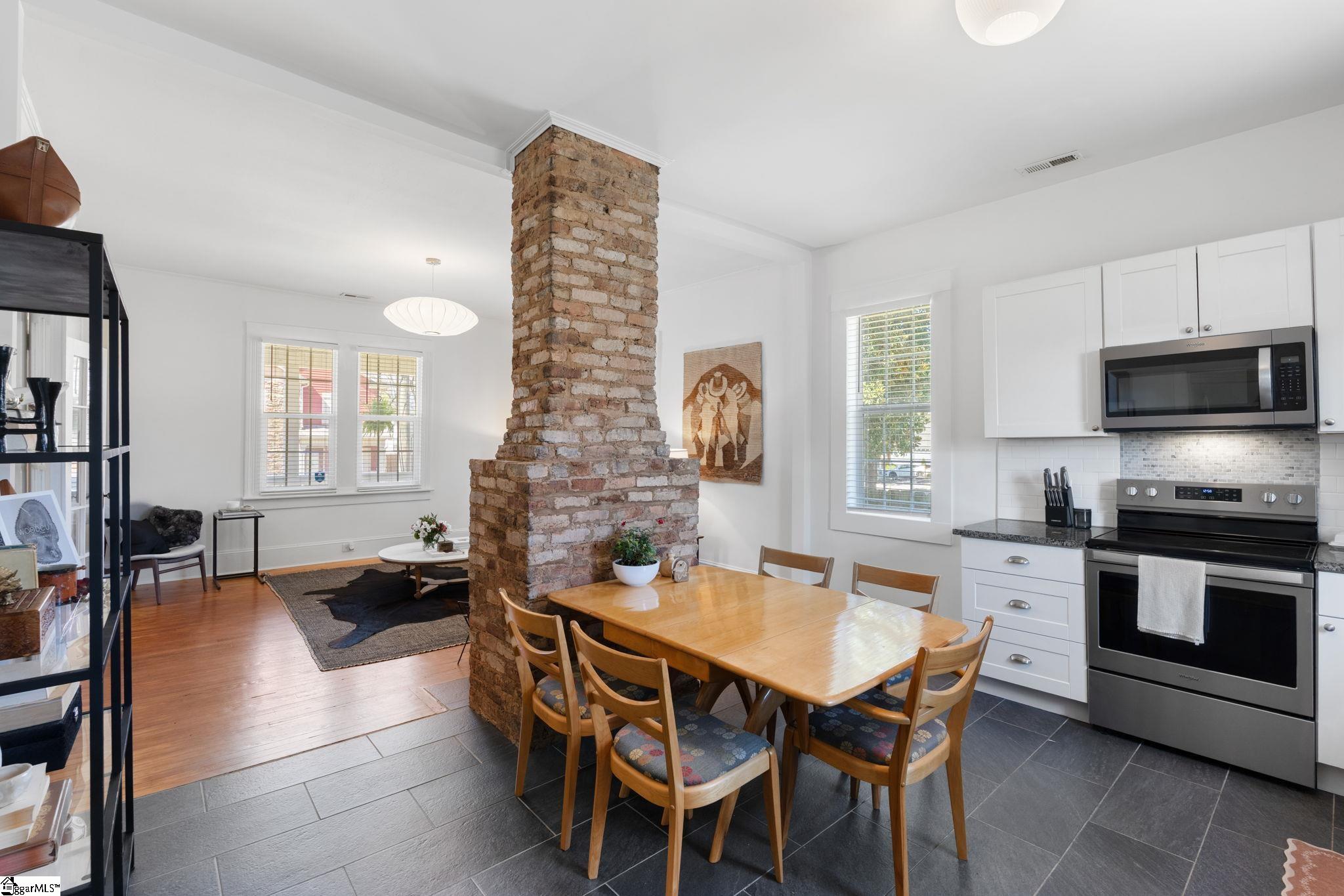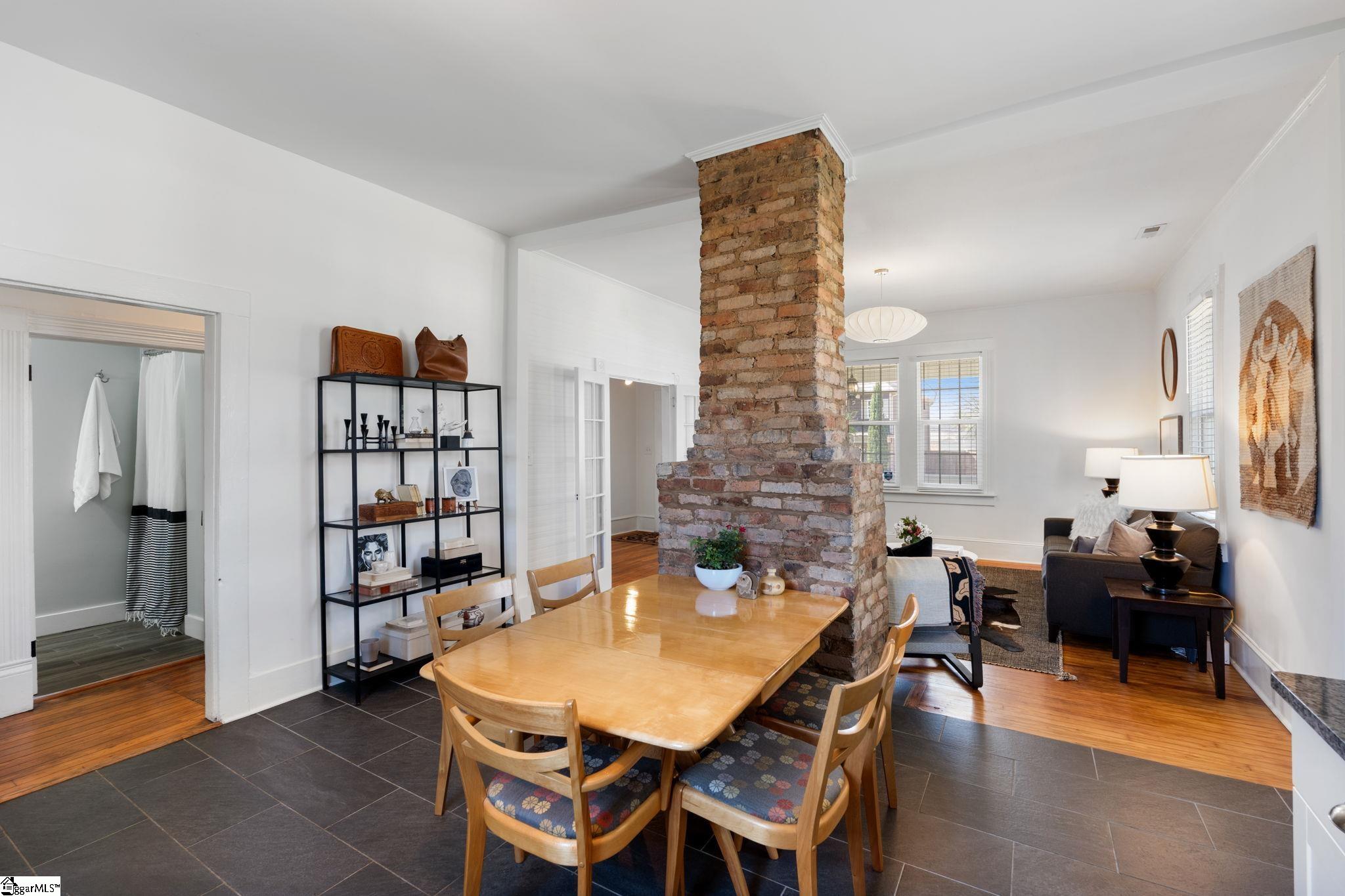 Step into timeless charm and style at this beautifully curated bungalow in the heart of the West End, downtown Greenville. This 2-bedroom, 2-bath home blends thoughtful design with classic historic character, creating a space that feels both elevated and welcoming. Inside, enter into a wide foyer, and tall ceilings showcasing original hardwood floors, detailed moldings, and abundant natural light. Follow french doors into the living room which centers around a charming original brick fireplace, a gathering area perfect for entertaining or relaxing evenings at home. The kitchen has been stylishly updated with white shaker cabinetry, granite countertops, stainless steel appliances, and a timeless subway tile backsplash, offering classic beauty. The primary suite features a walk-in closet and a beautifully renovated bath with a large tiled bath/ shower and modern fixtures. A generous secondary bedroom offers oversized windows, ample walk in closet space, and unique character touches that reflect the home’s historic roots. Many of the original doors and hardware remain, preserving the bungalow’s 1930s charm while complementing its modern updates; most recently a brand new HVAC condenser unit as of March 2026. Outside, enjoy a private fenced backyard with plenty of room to relax, entertain, or expand. A concrete patio provides the perfect spot for outdoor dining and the backyard shed provides additional storage space for any overflow, garden tools or hobbies. Just blocks from Main Street, this home offers walkable access to Greenville’s baseball stadium (Flour Field), award winning restaurants and parks, festivals, and entertainment.