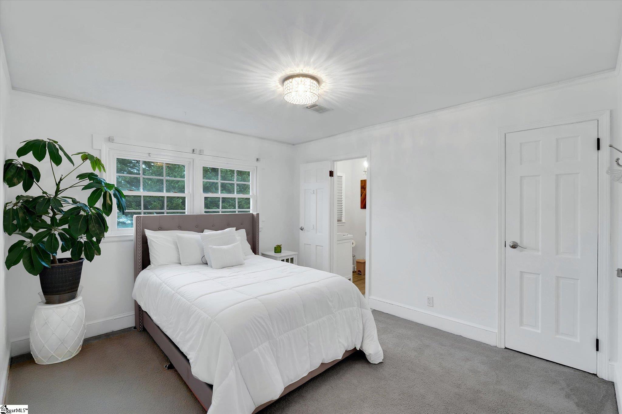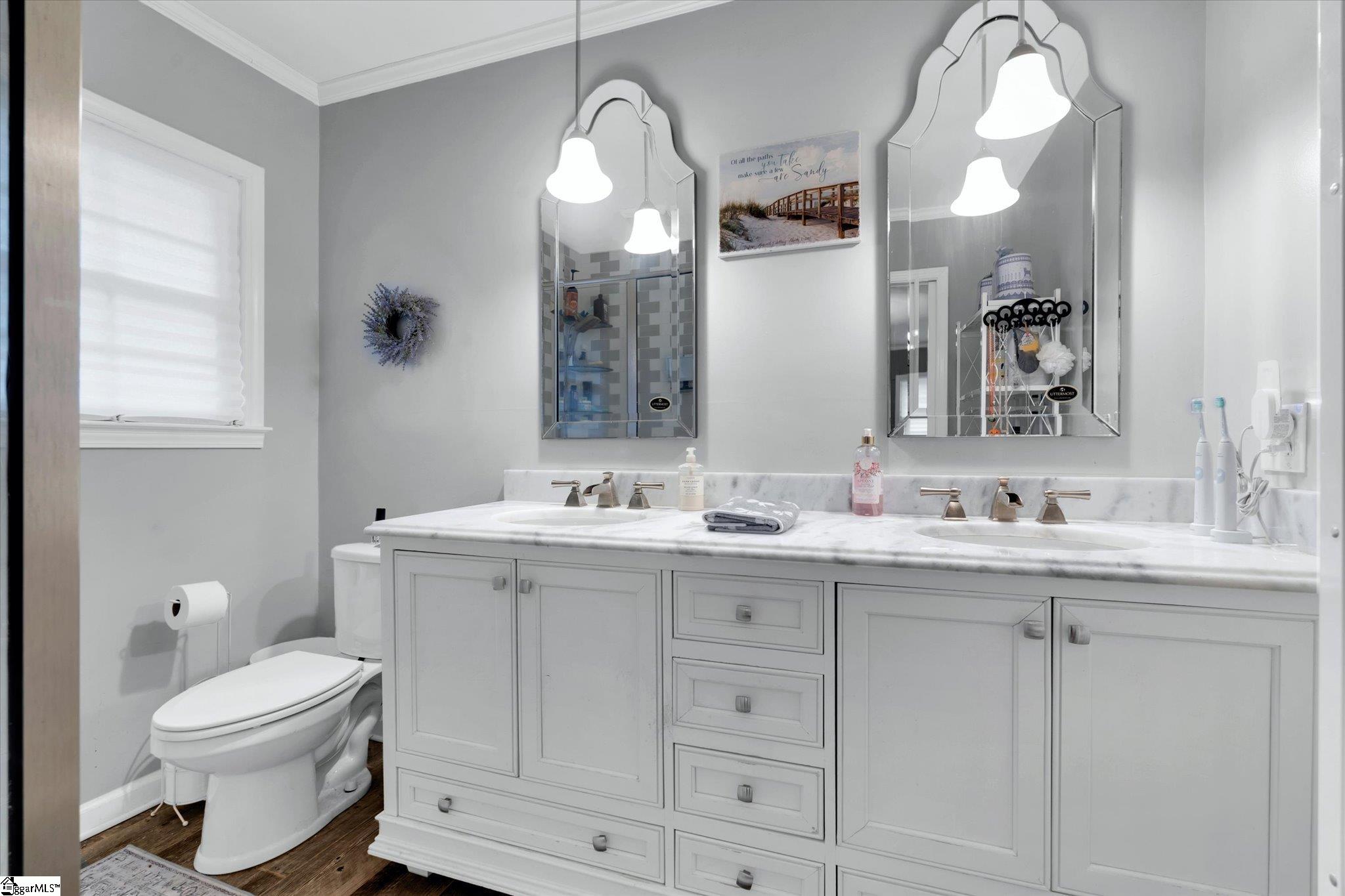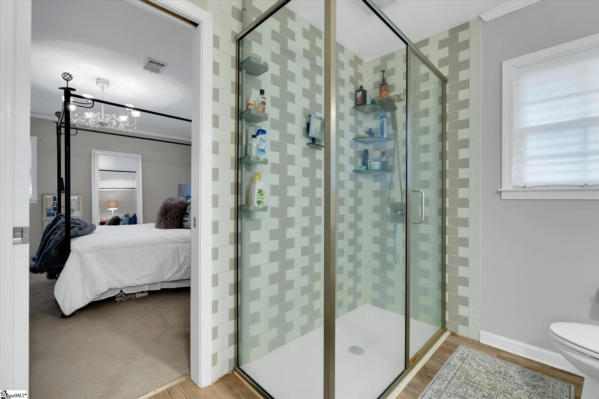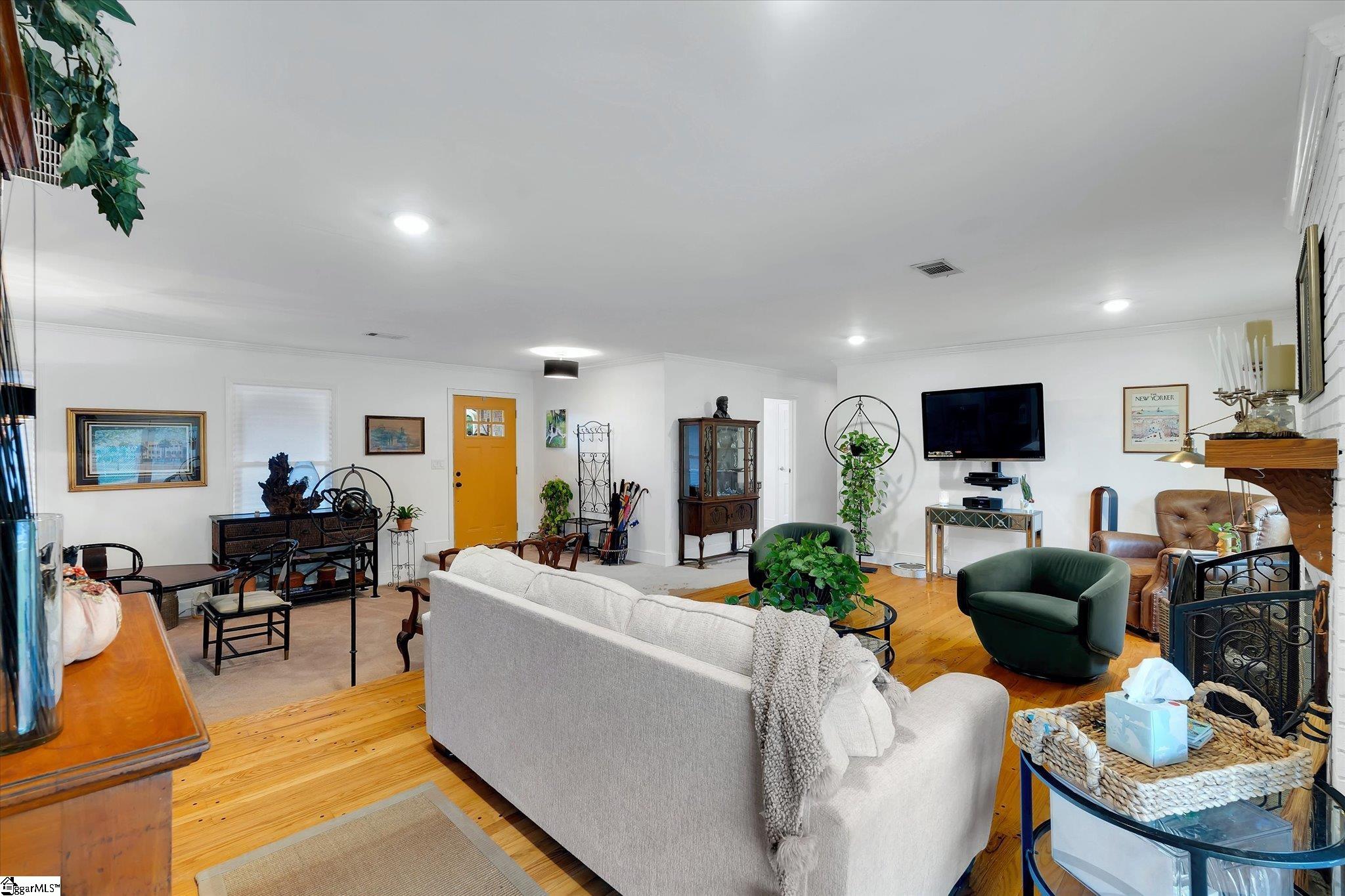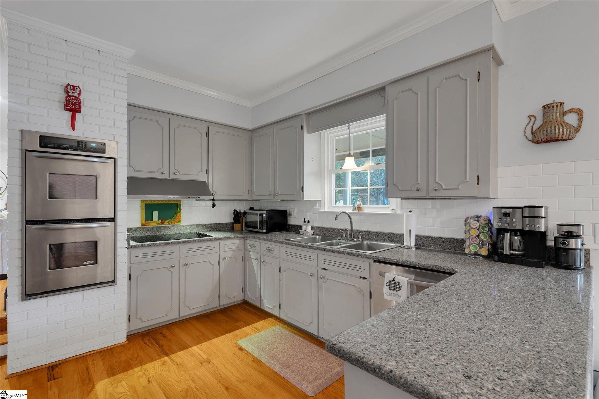 One-level all-brick home perfectly situated on a one-acre corner lot with an in-ground saltwater pool in Fountain Inn’s most desirable areas. Surrounded by other well-kept homes, this property offers a rare blend of space, comfort, and convenience—all within walking distance to downtown Fountain Inn and the Swamp Rabbit Trailhead via the sidewalk just out front. Inside, the open floor plan features a spacious living area that flows into the dining spaces and kitchen areas—ideal for both relaxing and entertaining. The kitchen boasts granite countertops, stainless-steel appliances, double ovens, and a pantry closet. The primary suite is a peaceful retreat with an updated en-suite bathroom showcasing double vanities with marble countertops, a tile shower with glass enclosure, and tile flooring. The second bedroom includes its own walk-in closet and private en-suite bath with a tile-surround tub/shower, which can easily convert back to a Jack-and-Jill layout for access from the third bedroom. Enjoy outdoor living at its best with a fenced backyard, two storage buildings, and a saltwater pool perfect for summer days. Additional features include an oversized two-car garage and a roof approximately 3 years old. Close to Carolina Springs Golf Course, Fox Run Country Club, and just minutes from Simpsonville and Greenville, this home offers the ideal mix of tranquility and accessibility. This One Is A Must See!